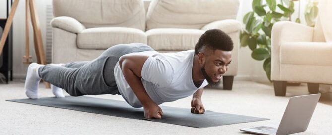 Een zelfstandig sportinstructeur maakt tijdens de coronalockdown instructievideo's vanuit haar woonkamer.
